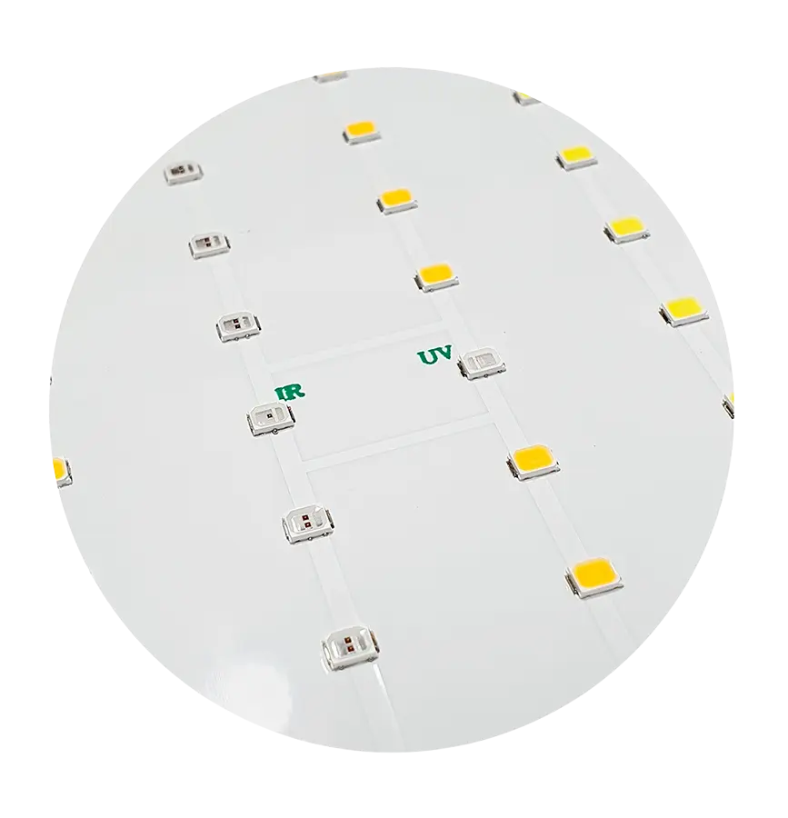 • LED Configuration: Samsung LM301B/H + 660 nm deep-red + 730 nm far-red + UV-A
